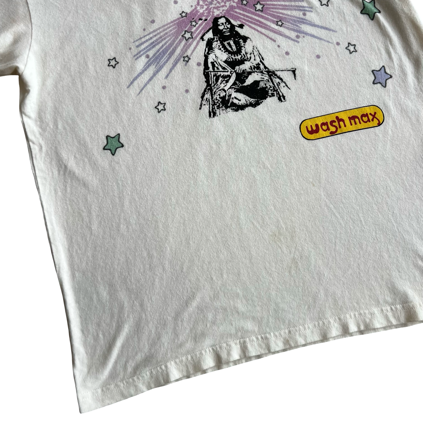 Worn with some marks on the front but only noticeable to the person wearing it. Fun take on a Peter Max style graphic.